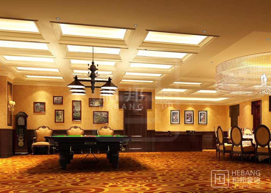 高端大氣的美式酒店。設(shè)計主要采用的是華麗的燈光裝飾設(shè)計,明亮閃耀的燈飾和漂亮的地毯一起作用于房間,好不愜意。