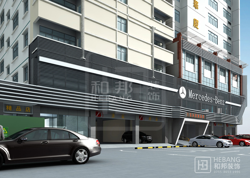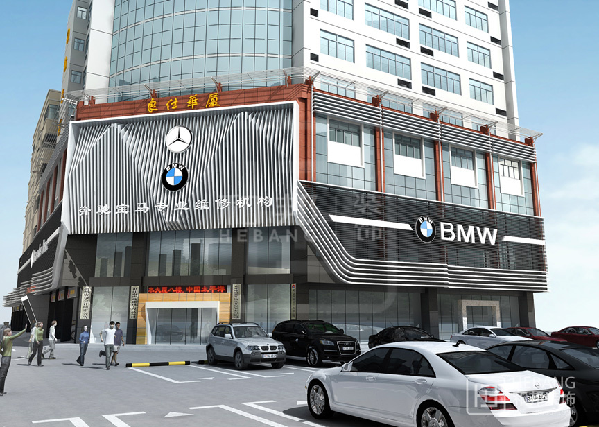 | 設(shè)計(jì)說明 | 高端大氣的現(xiàn)代設(shè)計(jì):以汽車頭部為原型設(shè)計(jì)的門頭,大膽新穎,創(chuàng)新十足。分區(qū)設(shè)計(jì),奔馳與寶馬維修店分布兩旁,使整個(gè)維修機(jī)構(gòu)美觀大方。 | ||||