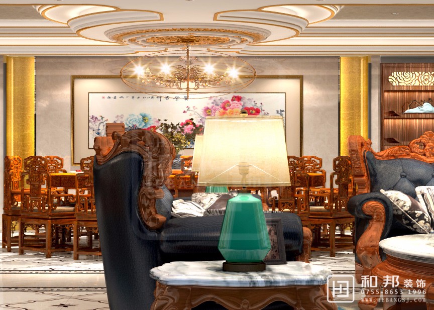 本案從孔雀綠玉石背景墻上彰顯出特意的設(shè)計質(zhì)感,也造就出深淺對比,層次有序的精致風(fēng)華。