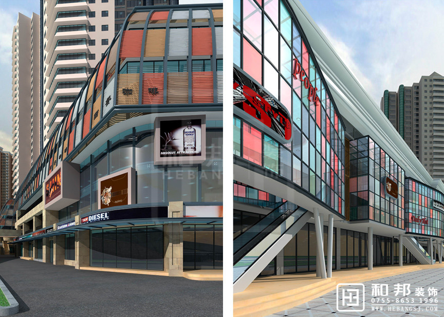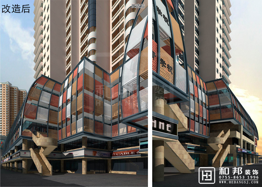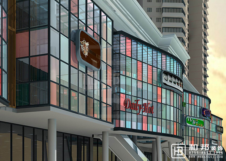 | 設(shè)計(jì)說(shuō)明 | 本設(shè)計(jì)樓下商業(yè)區(qū)外觀使用了幾種顏色的拼接了起來(lái),給整個(gè)空間添加了色彩感。 | ||||